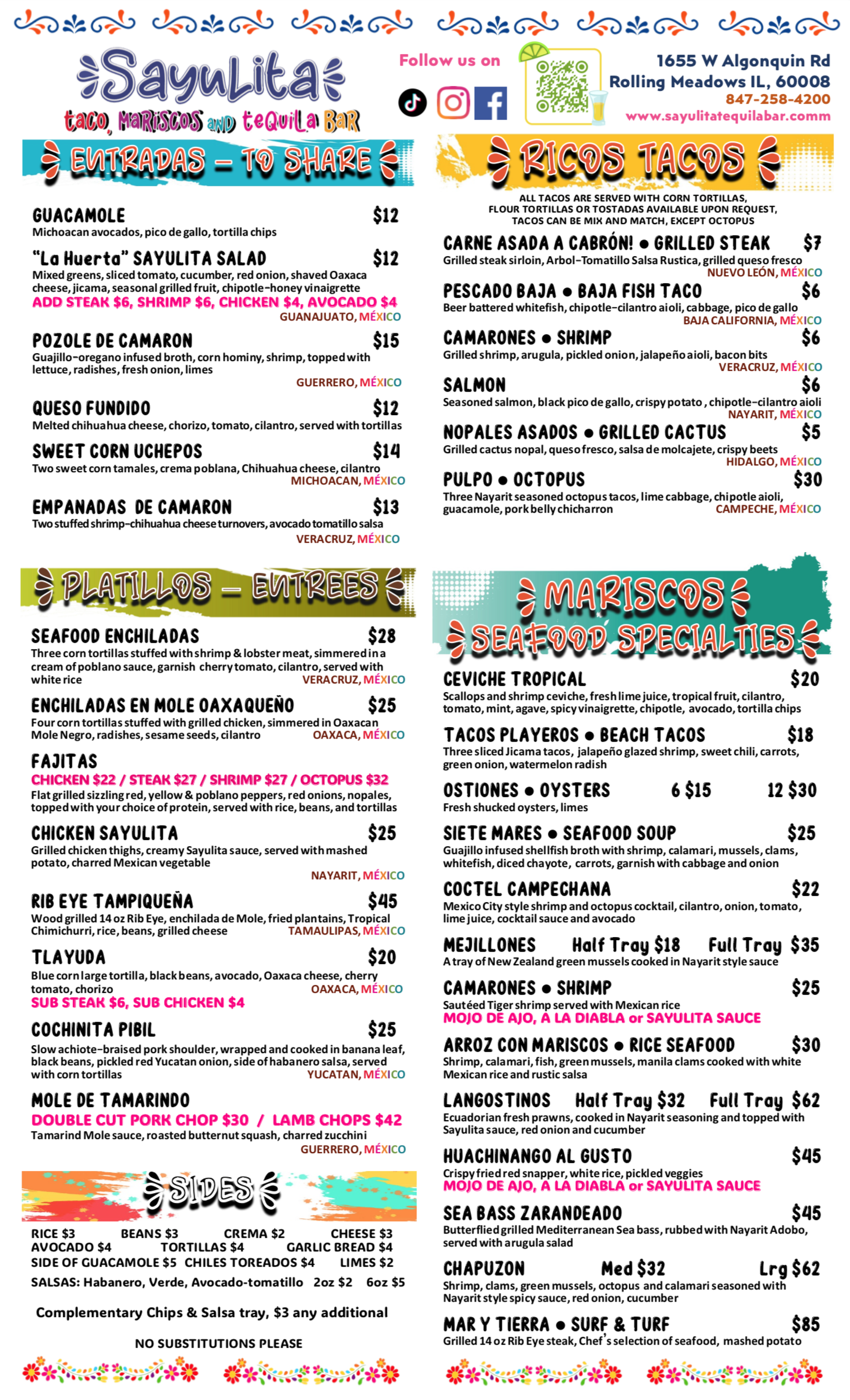 Shrimp, calamari, fish, mussels, and manila clams cooked with mexican rice and rustic salsa